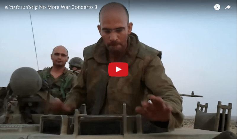 During times of war it is very easy to dehumanize those we perceive to to be the ‘other’ and to forget we are human beings ourselves. The humanity in this IDF soldier resonates off of him as he chants ‘no more war, no more bloodshed’ and turns his nagmash (Hebrew for armoured personnel carrier) into a drum for peace.